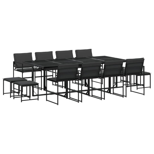 Set da Pranzo da Giardino 13 pz con Cuscini Nero in Textilene
