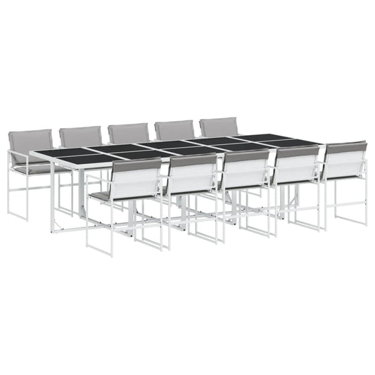 Set da Pranzo da Giardino 11 pz con Cuscini Bianco in Textilene