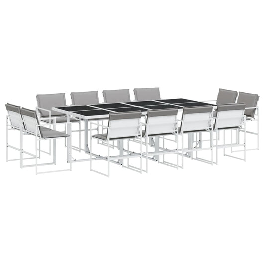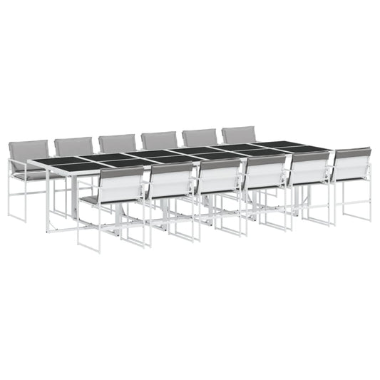 Set da Pranzo da Giardino 13 pz con Cuscini Bianco in Textilene