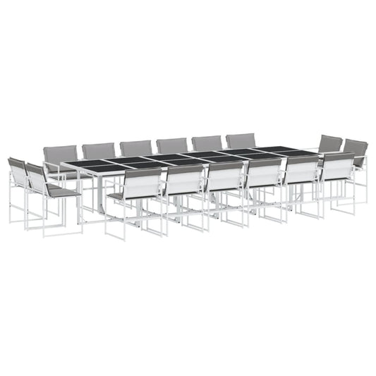 Set da Pranzo da Giardino 17 pz con Cuscini Bianco in Textilene