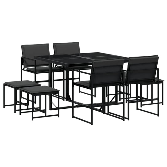 Set da Pranzo da Giardino 9 pz con Cuscini Nero in Textilene