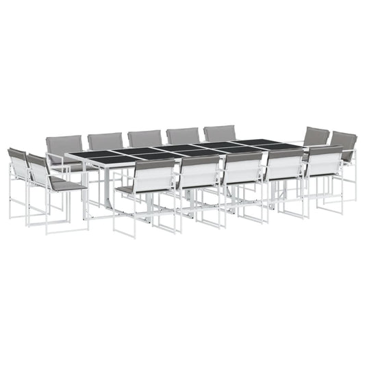 Set da Pranzo da Giardino 15 pz con Cuscini Bianco in Textilene
