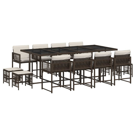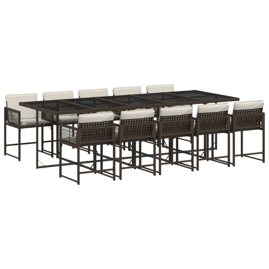Set da Pranzo da Giardino 13pz con Cuscini Marrone Polyrattan