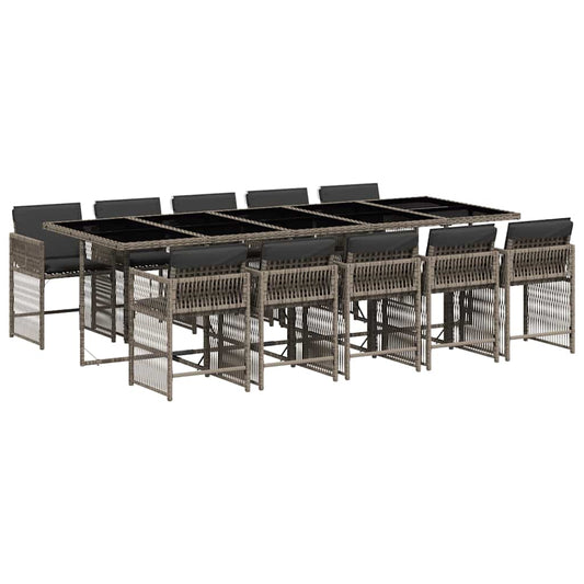 Set da Pranzo da Giardino 13pz con Cuscini Grigio in Polyrattan