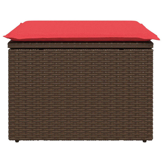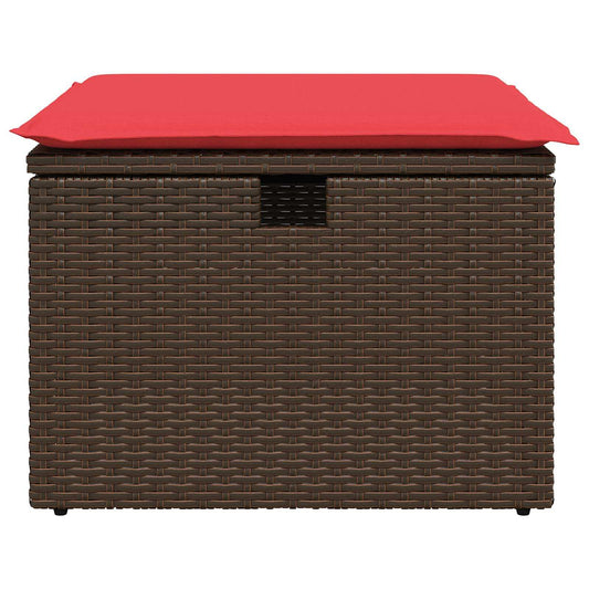 Sgabello da giardino con cuscino marrone 55x55x37 cm in polyrattan
