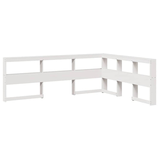 Testiera Libreria a L Bianca 140 cm in Legno Massello di Pino