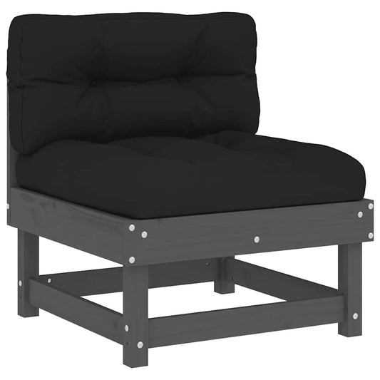 Divano Centrale con Cuscini in Legno Massello di Pino Grigio