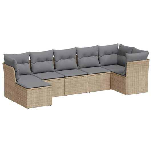 Set Divani da Giardino 7 pz con Cuscini Beige in Polyrattan