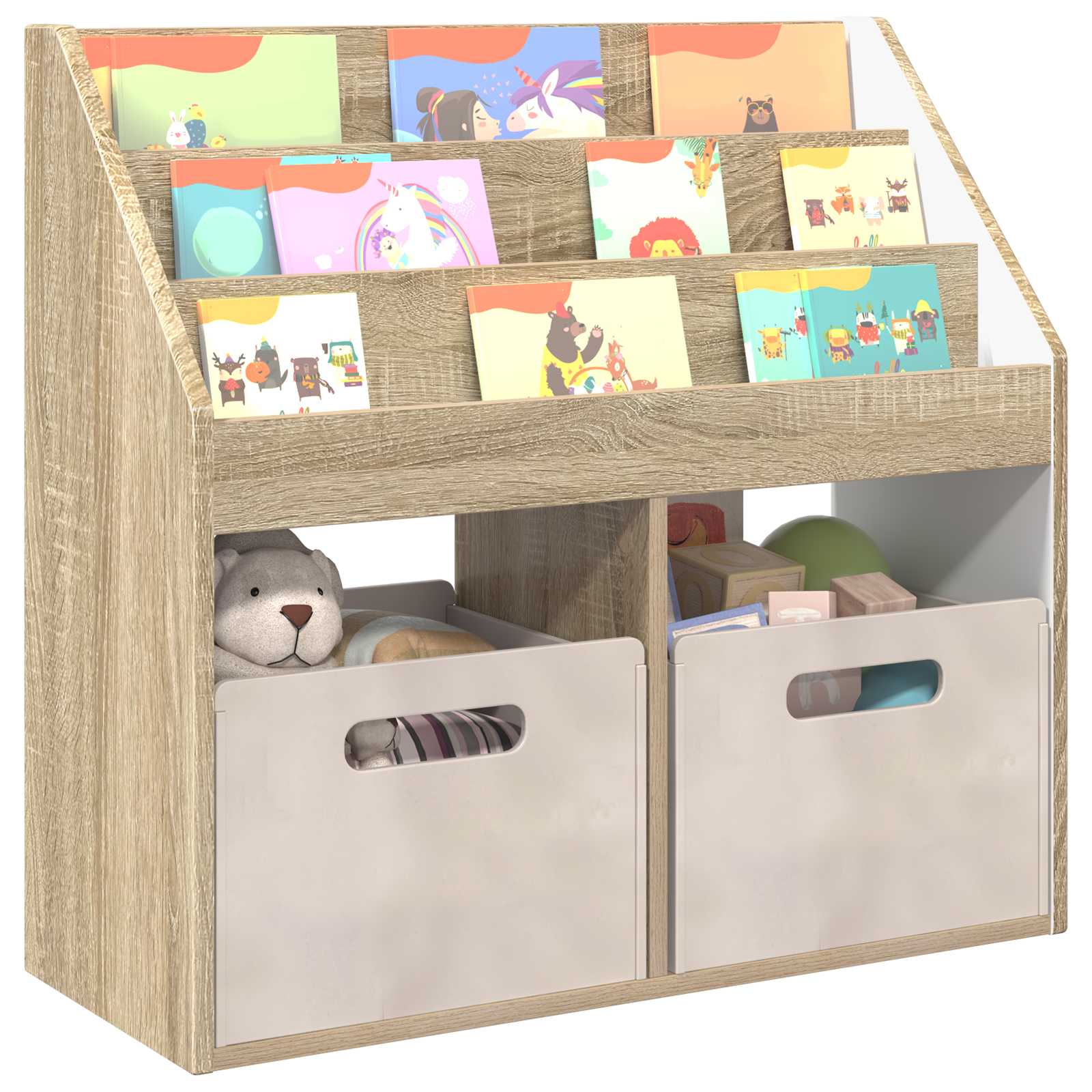 - Utilizzo pratico: Con ripiani spaziosi, è perfetta per riporre libri e giocattoli. La scaffalatura aperta rende tutto facilmente accessibile ai bambini, creando un ambiente educativo dove possono esplorare e interagire autonomamente.