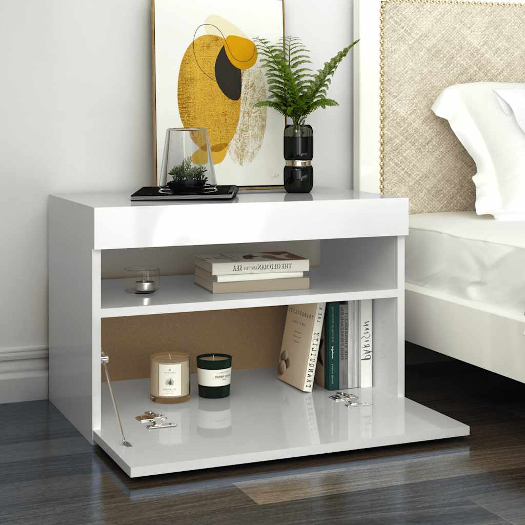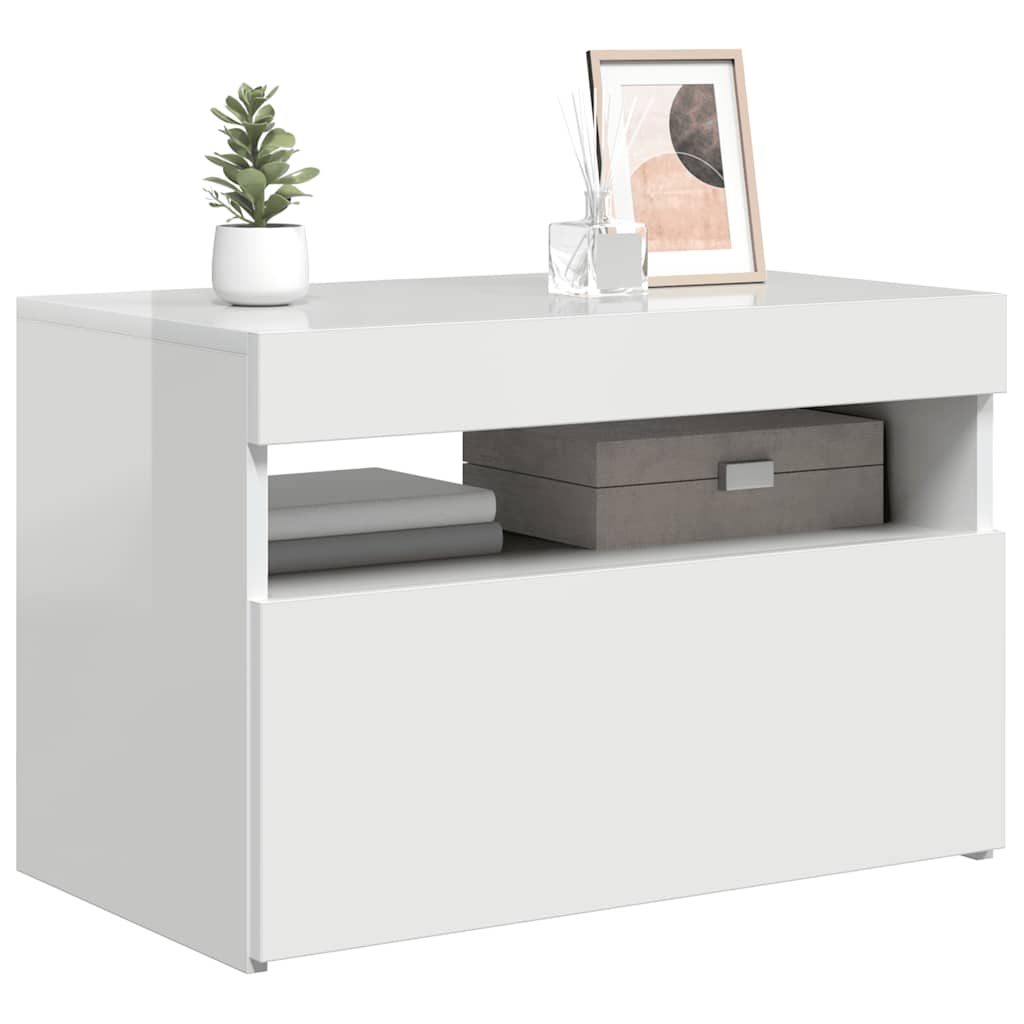 Mobile Porta TV con Luci LED Bianco Lucido 60x35x40 cm