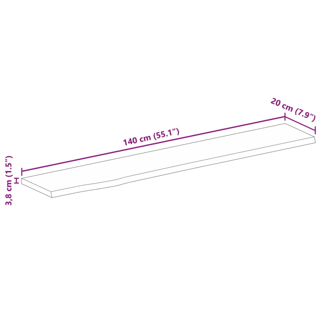 Piano Tavolo 140x20x3,8 cm Bordi Vivi Legno di Mango Grezzo