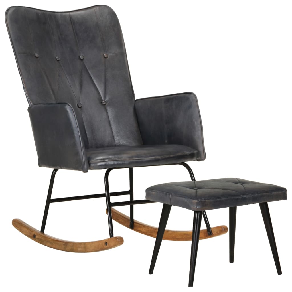 Sedia a Dondolo con Poggiapiedi Grigio in Vera Pelle