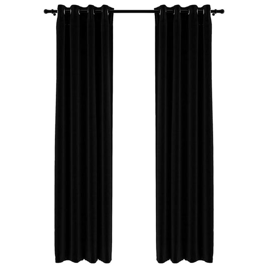 Tende Oscuranti Effetto Lino con Occhielli 2pz 140x245cm Nere