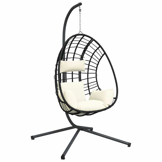 Poltrona sospesa a uovo con cuscino bianco crema in polyrattan e acciaio