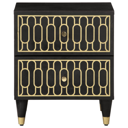 Comodino Nero 50x33x60 cm in Legno Massello di Mango