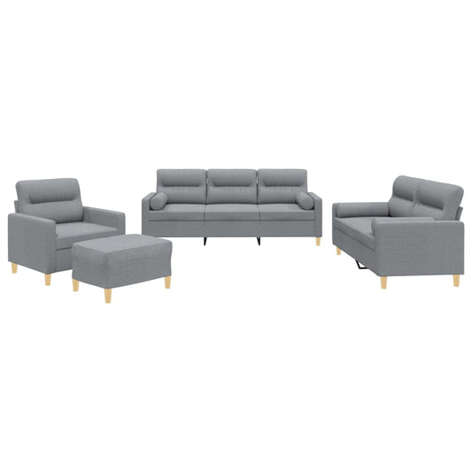 Set Divani 4 pz con Cuscini Grigio Chiaro in Tessuto