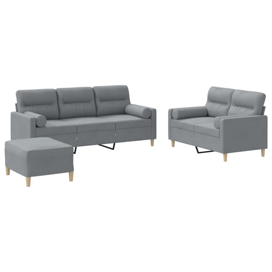 Set Divani 3 pz con Cuscini Grigio Chiaro in Tessuto