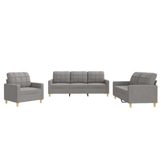 Set di Divani 3 pz con Cuscini Tortora in Tessuto