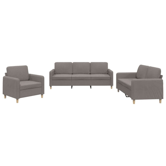 Set di Divani 3 pz con Cuscini Tortora in Tessuto