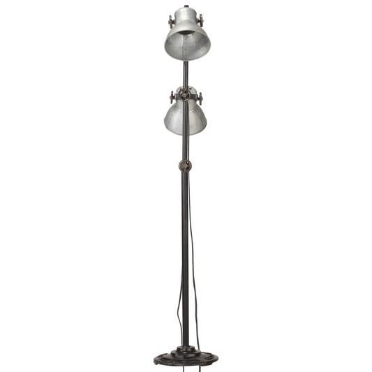 Lampada da Pavimento con 2 Paralumi Argento E27 in Ghisa