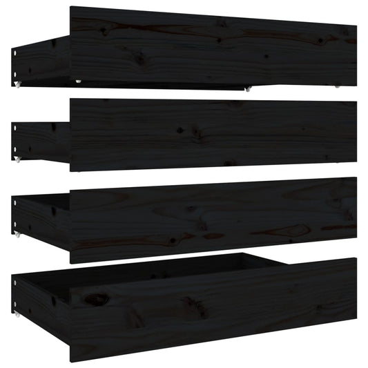 Cassettoni da Letto 4 pz in Legno Massello di Pino Nero