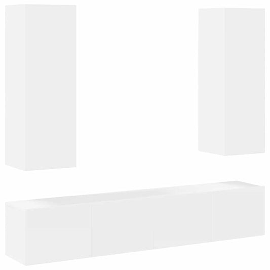 Set mobile TV 4 pcs Bianco Lucido Legno multistrato