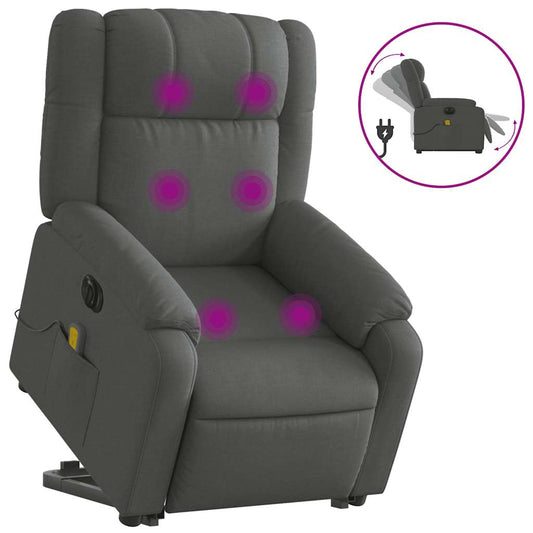 Poltrona Alzapersona Massaggi Elettrica Grigio Scuro Tessuto