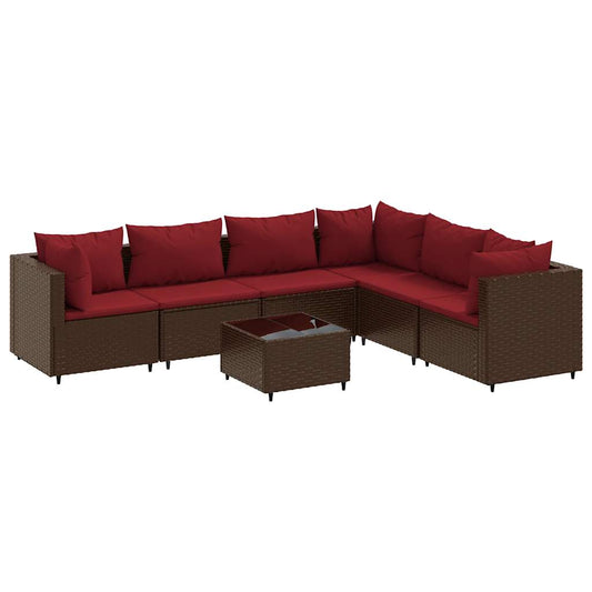 Set Divani da Giardino 8 pz con Cuscini in Polyrattan Marrone