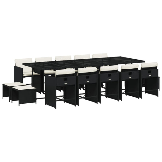 Set da Pranzo da Giardino 15 pz con Cuscini Nero in Polyrattan