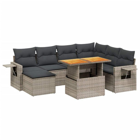 Set Divano da Giardino 8 pz con Cuscini Grigio in Polyrattan
