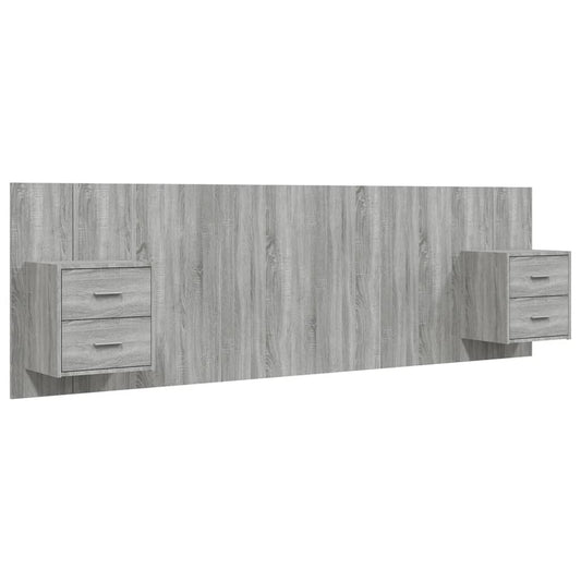 Testiera Letto con Comodini in Legno Multistrato Grigio Sonoma