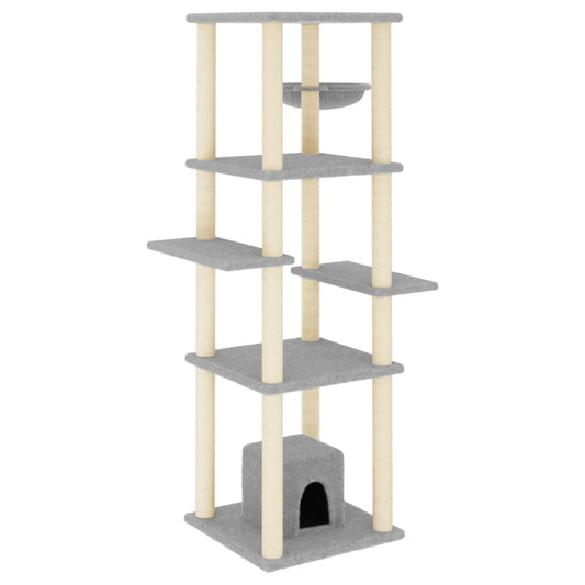 Albero per Gatti con Tiragraffi in Sisal Grigio Chiaro 141 cm