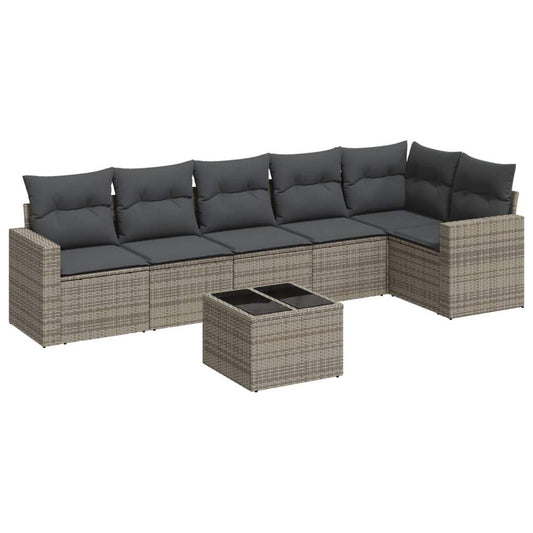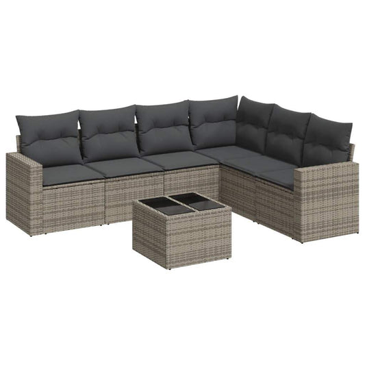 Set Divani da Giardino 7 pz con Cuscini Grigio in Polyrattan