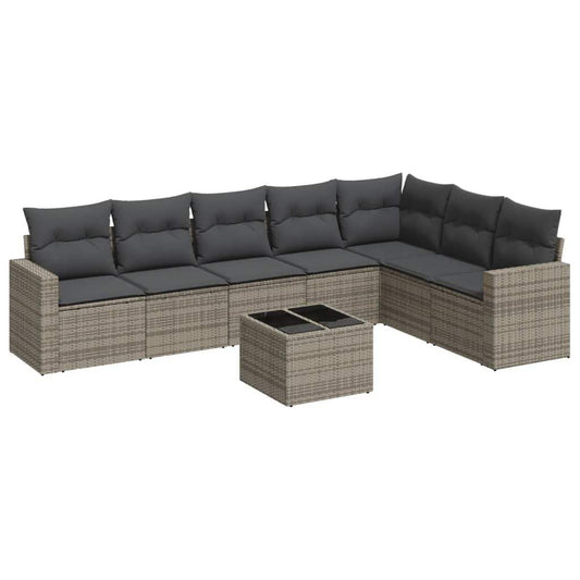 Set Divano da Giardino 8 pz con Cuscini Grigio in Polyrattan