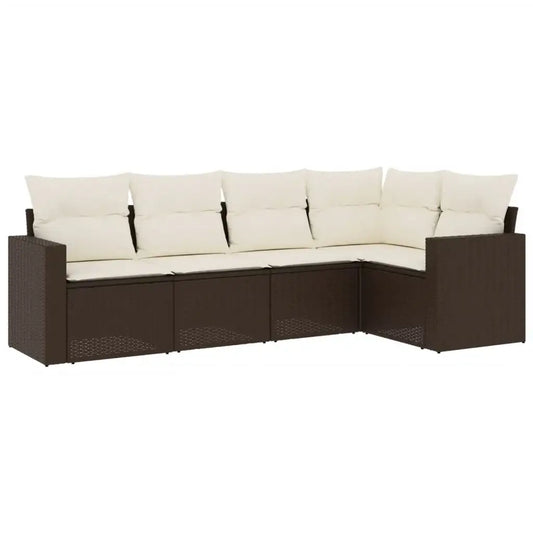 Set Divano da Giardino 5 pz con Cuscini Marrone in Polyrattan