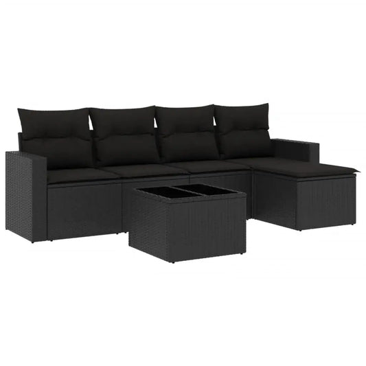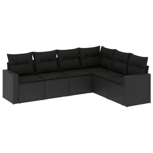 Set Divano da Giardino 6 pz con Cuscini Nero in Polyrattan