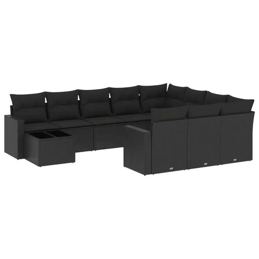Set Divani da Giardino 11 pz con Cuscini in Polyrattan Nero