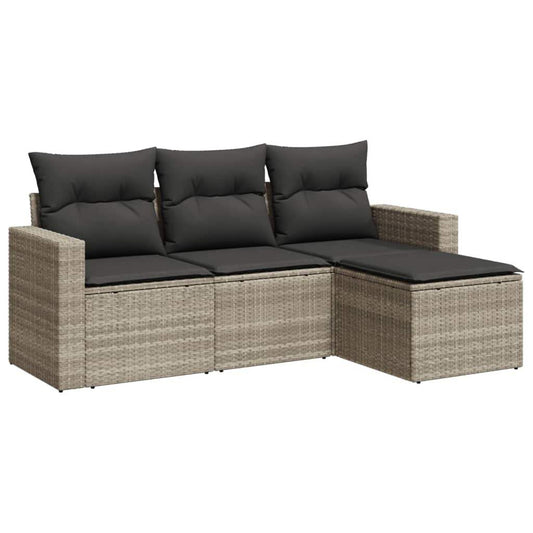 Set Divano da Giardino 4pz con Cuscini Grigio Chiaro Polyrattan
