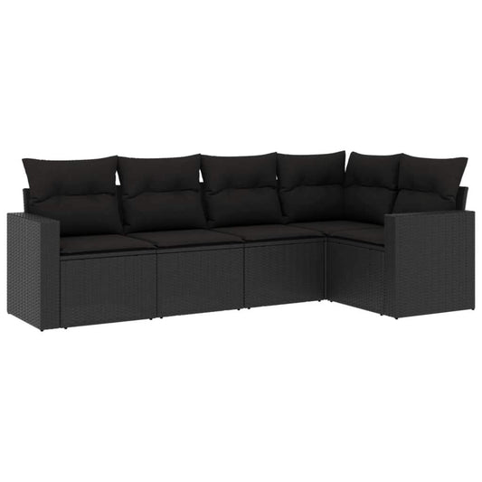 Set Divani da Giardino 5 pz con Cuscini in Polyrattan Nero
