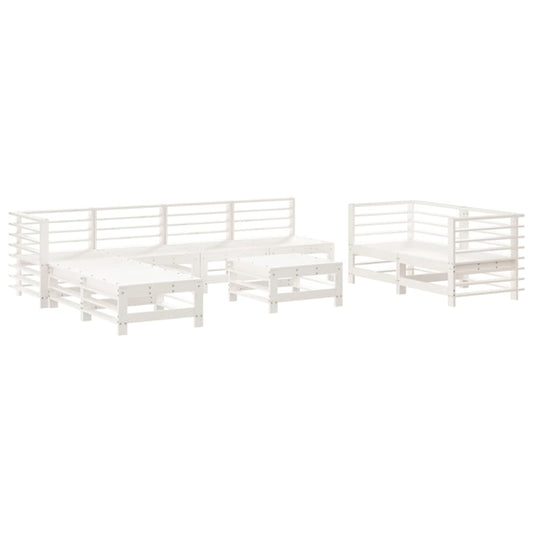 Set Salotto da Giardino 9 pz Bianco in Legno Massello di Pino