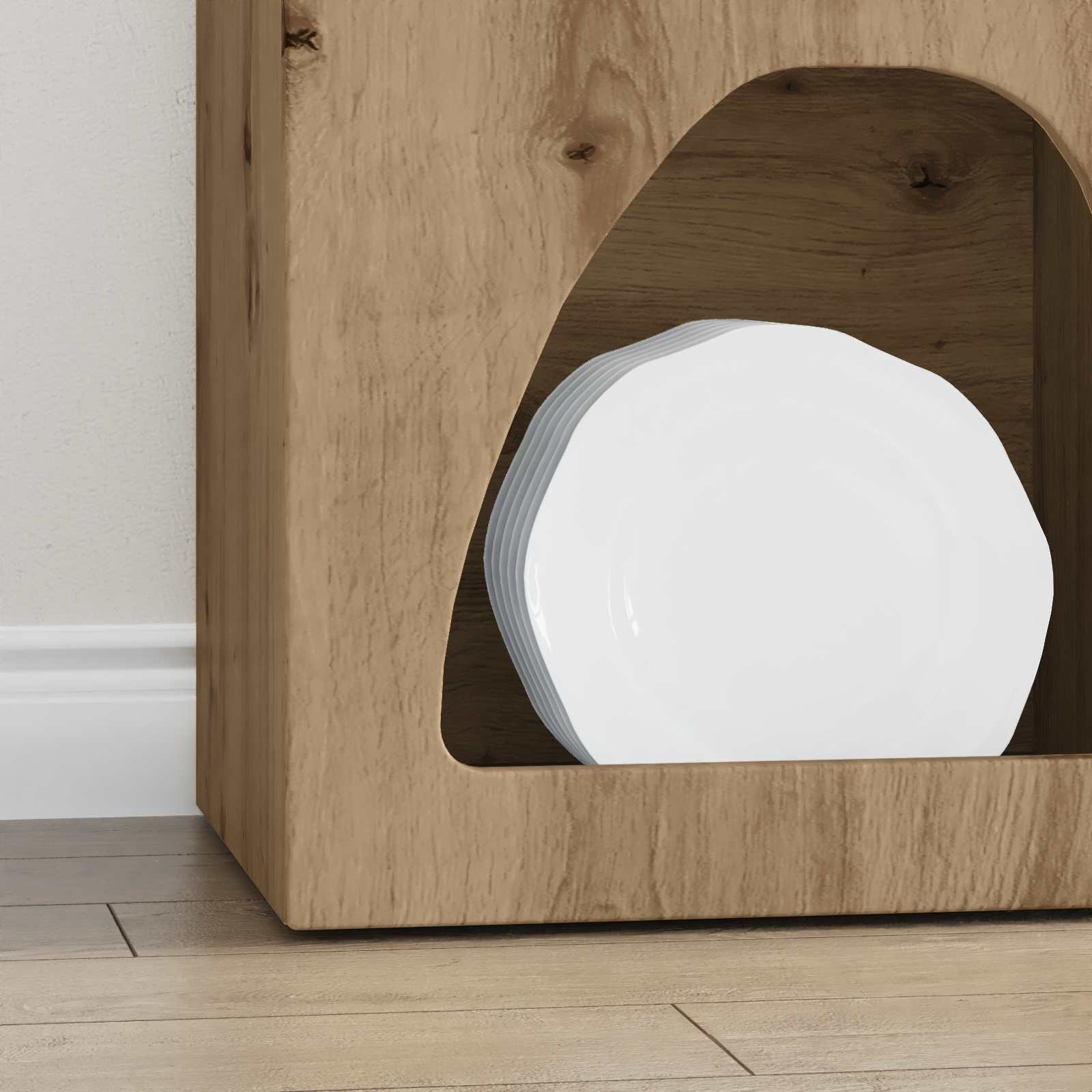 - Componenti Inclusi: La credenza ha ripiani ampi che creano scomparti perfetti per riporre piatti, biancheria o oggetti decorativi. La soluzione di scaffalatura è flessibile e permette di organizzare senza problemi sia in sala da pranzo che nel soggiorno, adattandosi a qualsiasi stile di arredamento.