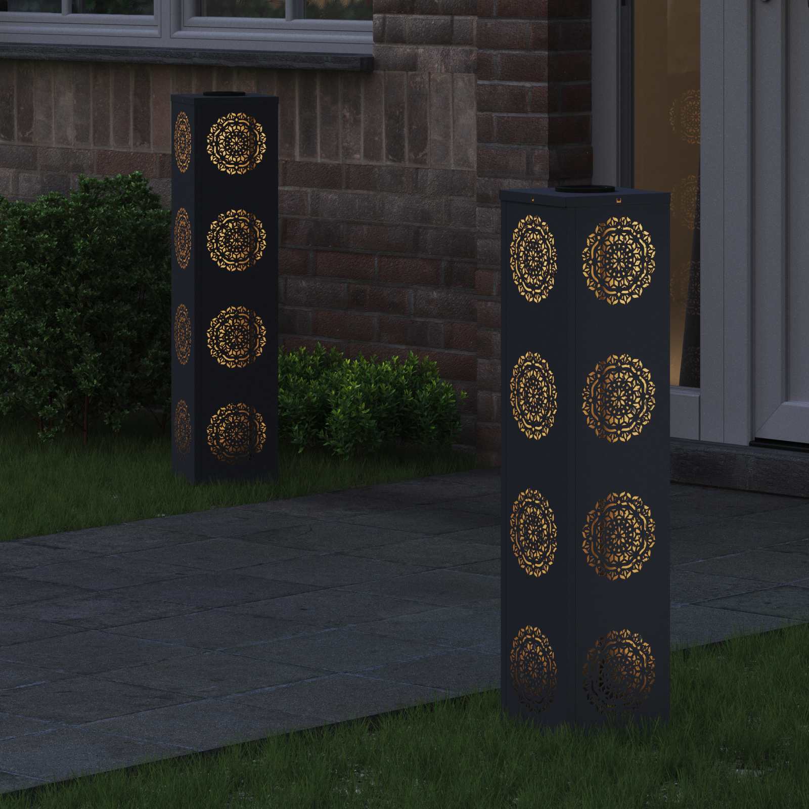 - Materiali: Fatte in acciaio di alta qualità, queste luci da sentiero sono molto robuste e resistenti agli agenti atmosferici. Con un design moderno, si integrano perfettamente nel paesaggio e garantiscono resistenza e longevità. Anche col tempo, manterranno il loro fascino.