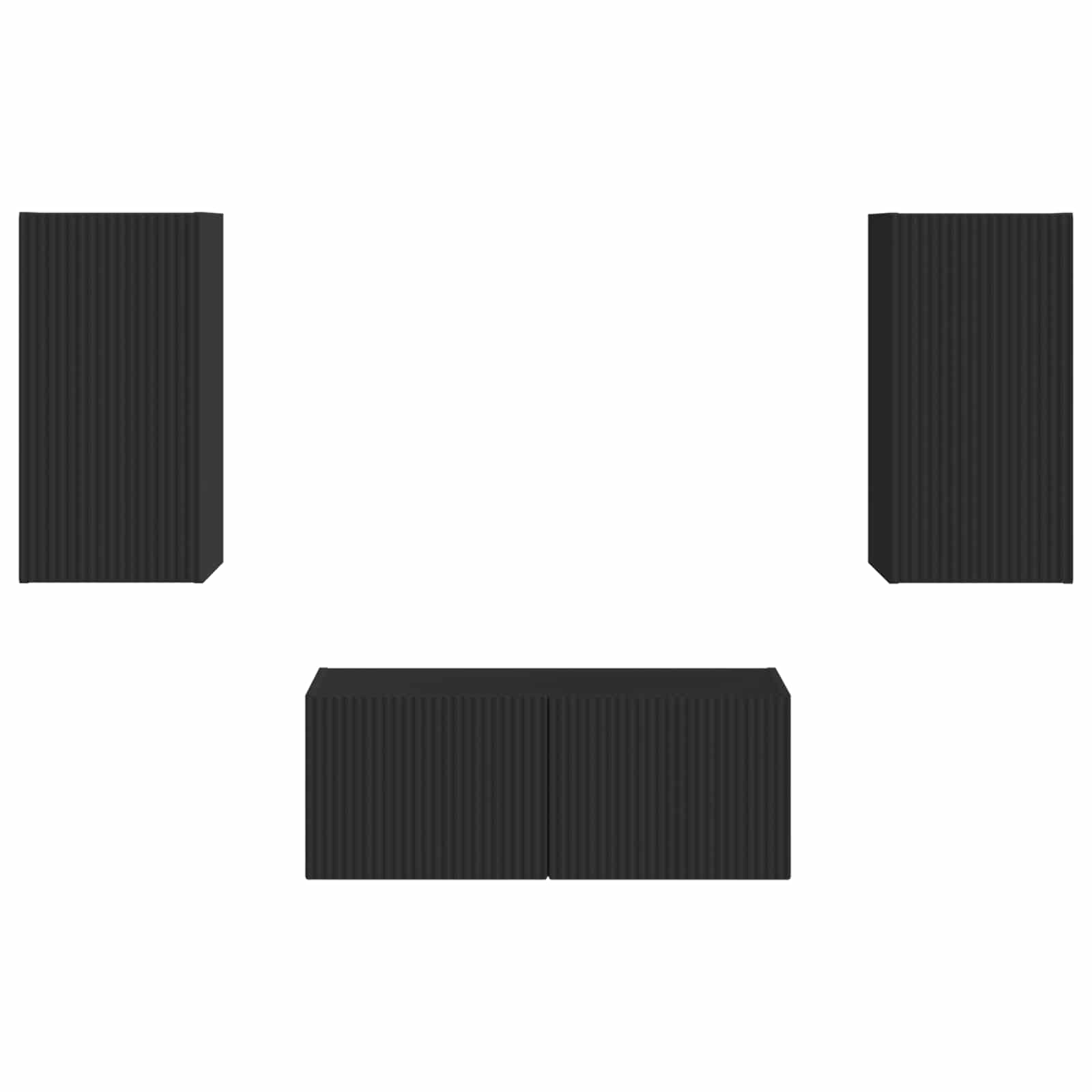 Set mobile TV Montaggio a parete 2 pcs Nero Legno multistrato