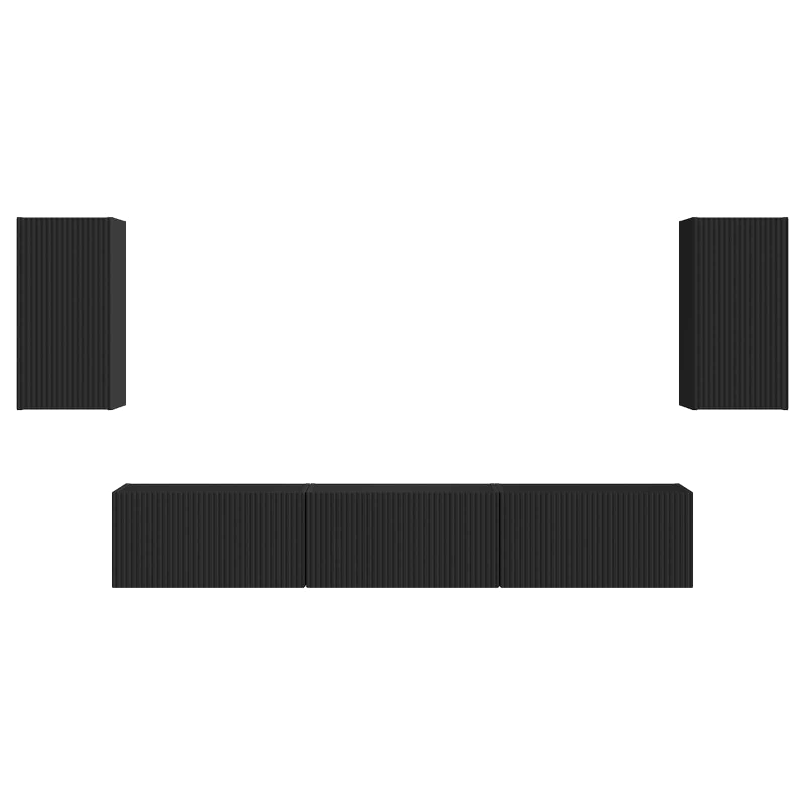 Set mobile TV Montaggio a parete 3 pcs Nero Legno multistrato
