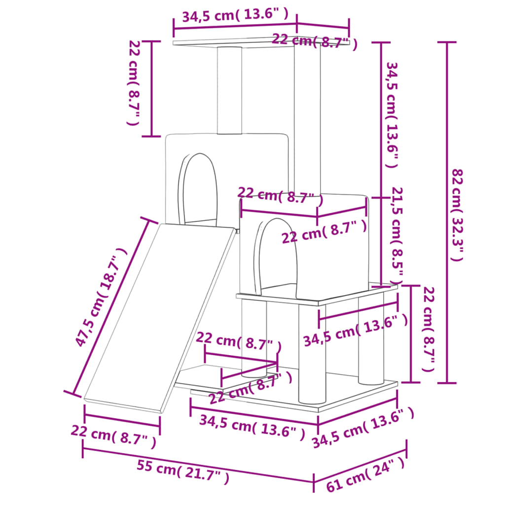 Albero per Gatti con Tiragraffi in Sisal Grigio Scuro 82 cm