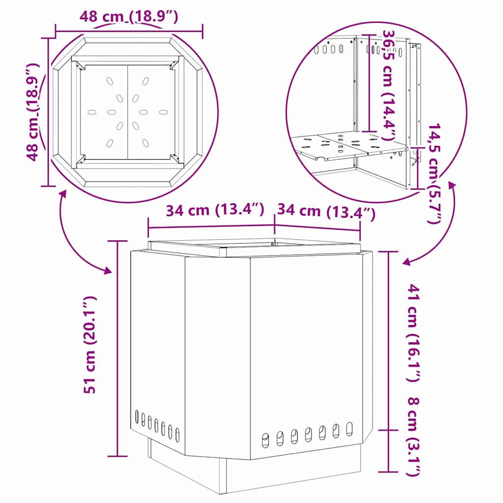 - Dispersione Efficiente del Calore: Grazie al design aperto, disperde il calore in modo efficace, riscaldando l'area intorno e mantenendo una combustione continua, per serate piacevoli in qualsiasi stagione.