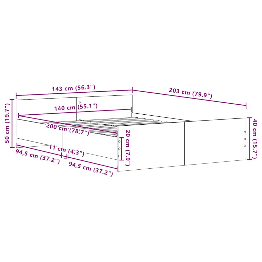 Giroletto senza Materasso Rovere Nero 140x200 cm Truciolato