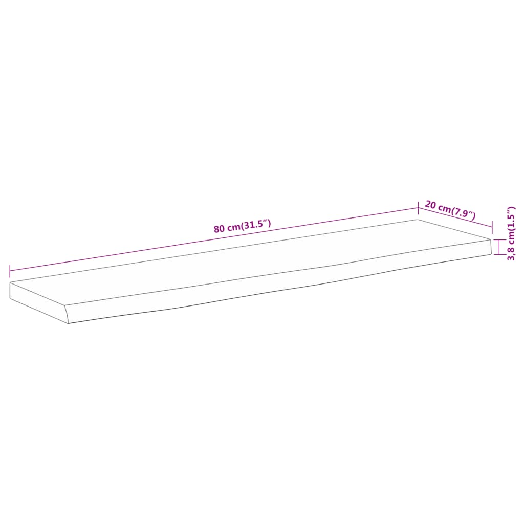 Mensola a Muro 80x20x3,8cm Rettangolare Legno Acacia Bordi Vivi