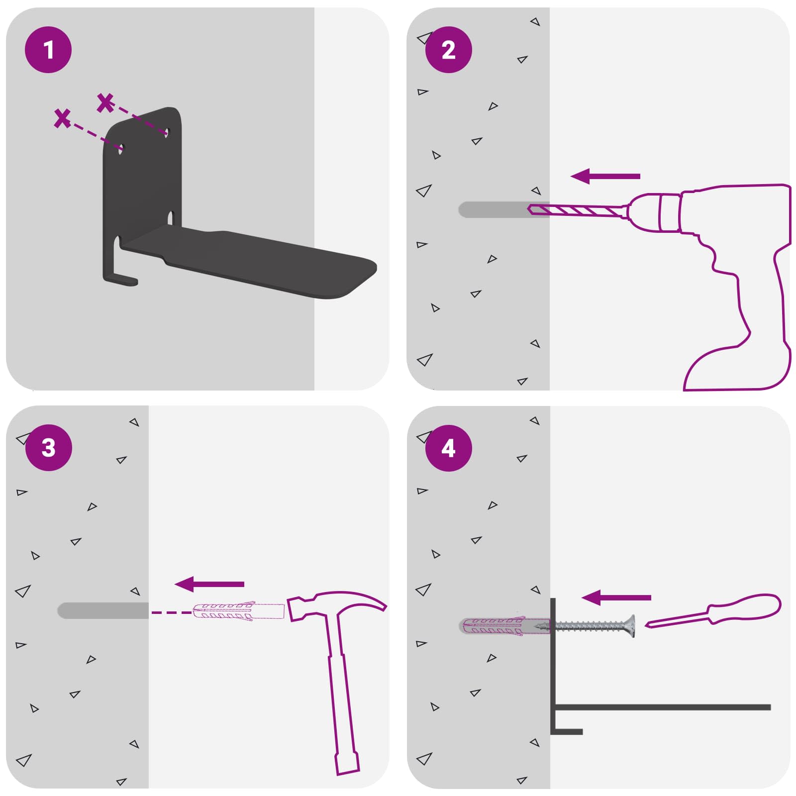 Mensola Flottante Invisibile 4 pcs Nero 6 x 11 x 6.5 cm Metallo