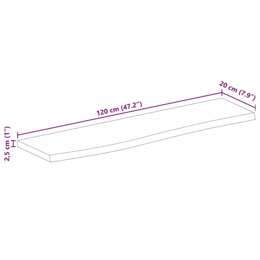 Piano Tavolo 120x20x2,5 cm Bordi Vivi Legno di Mango Grezzo